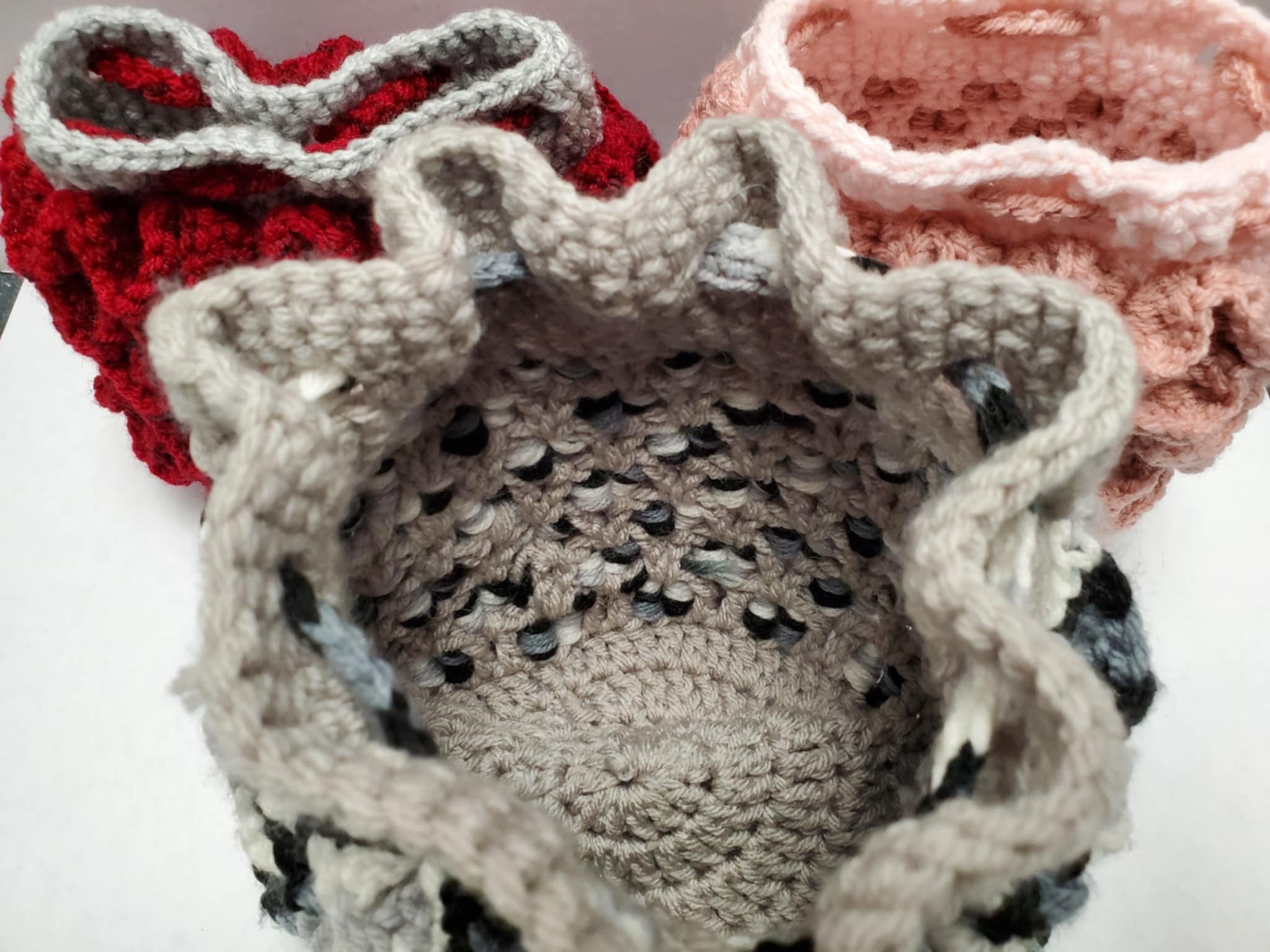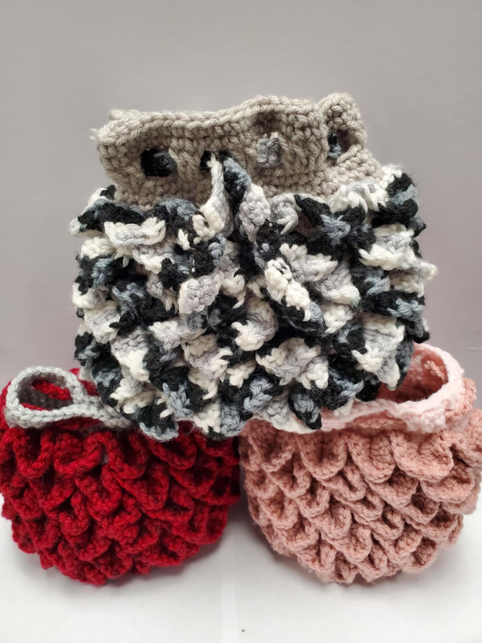 Wonderfully hand-crafted Crochet Dice bags done by our local artist.