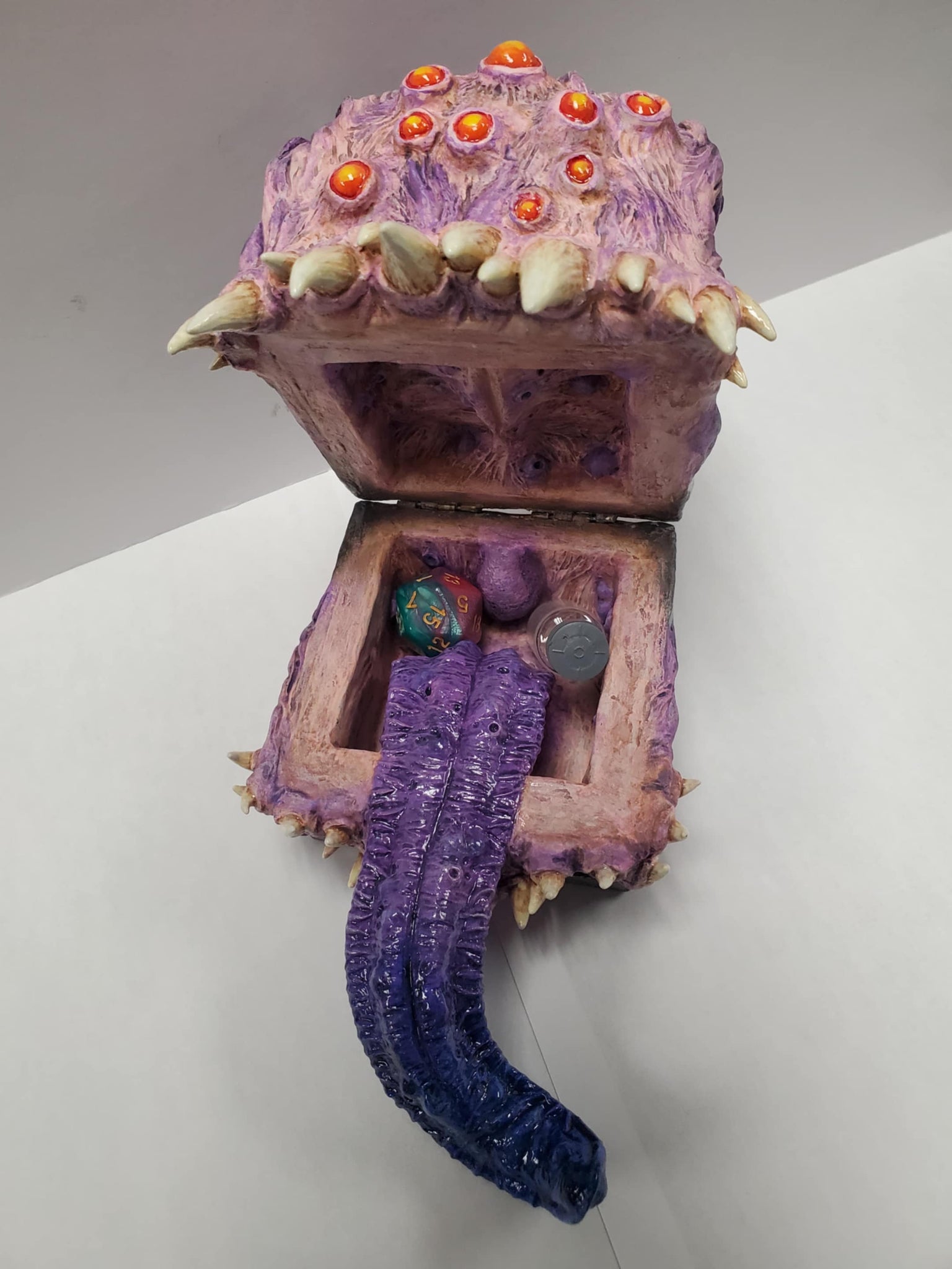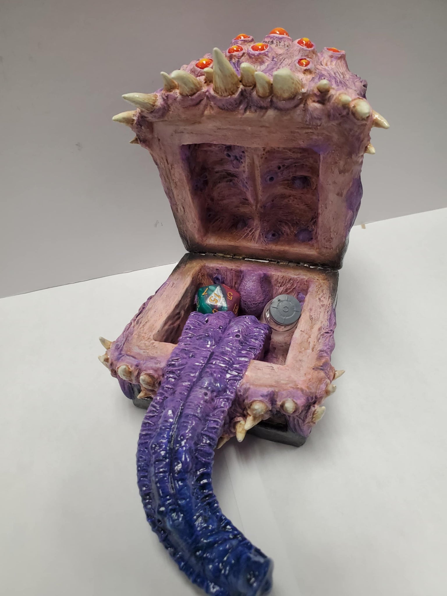 This mimic chest is everything your game needs! It can hide a few things in it's mouth while closed. Definitely would upgrade your game play!