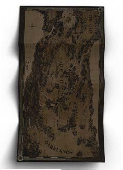 A large matte map of Fyera featuring the Lands of the Old Days, Penumbra and the entry to Darklands.